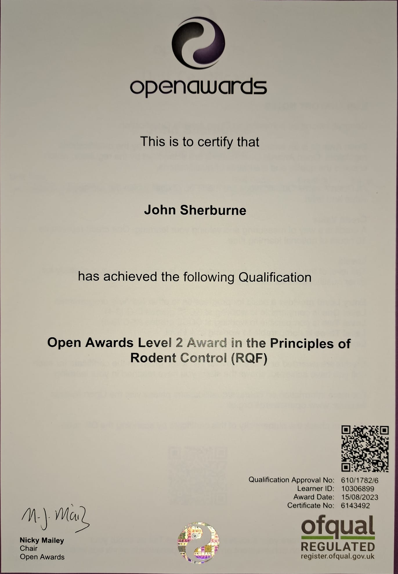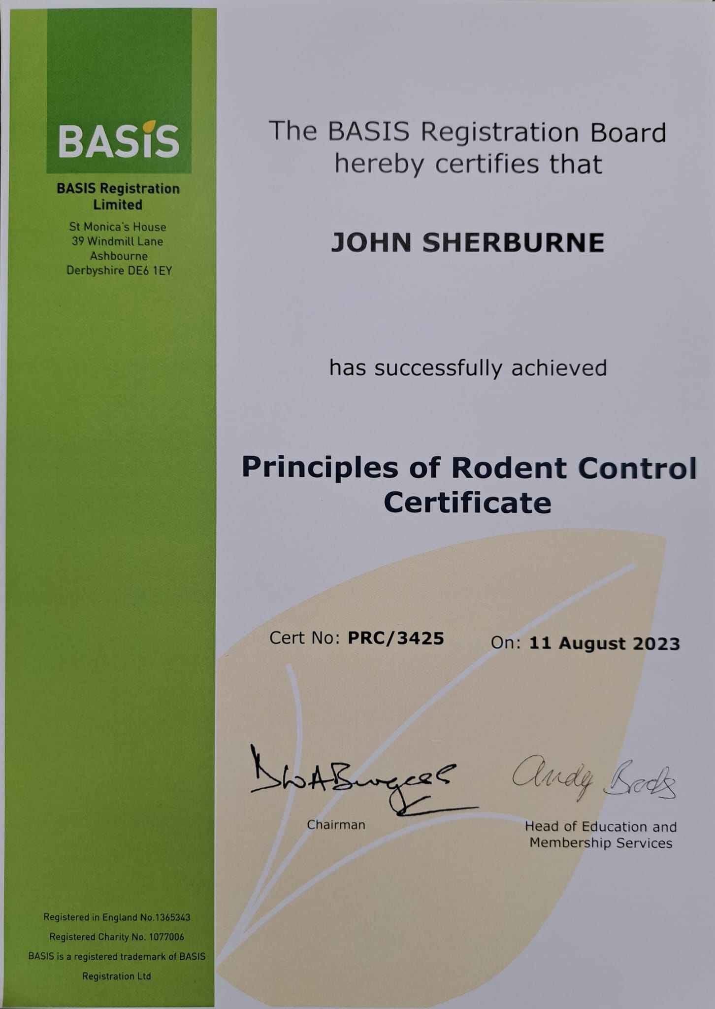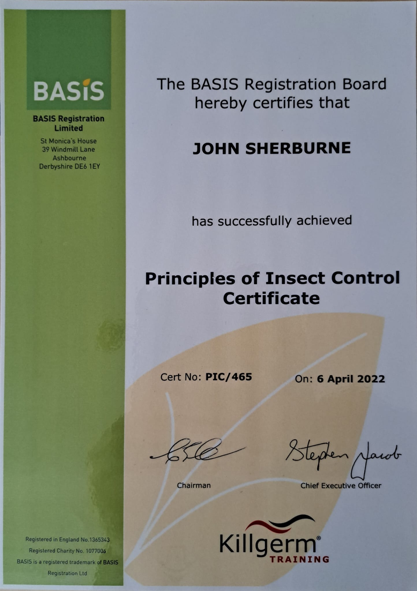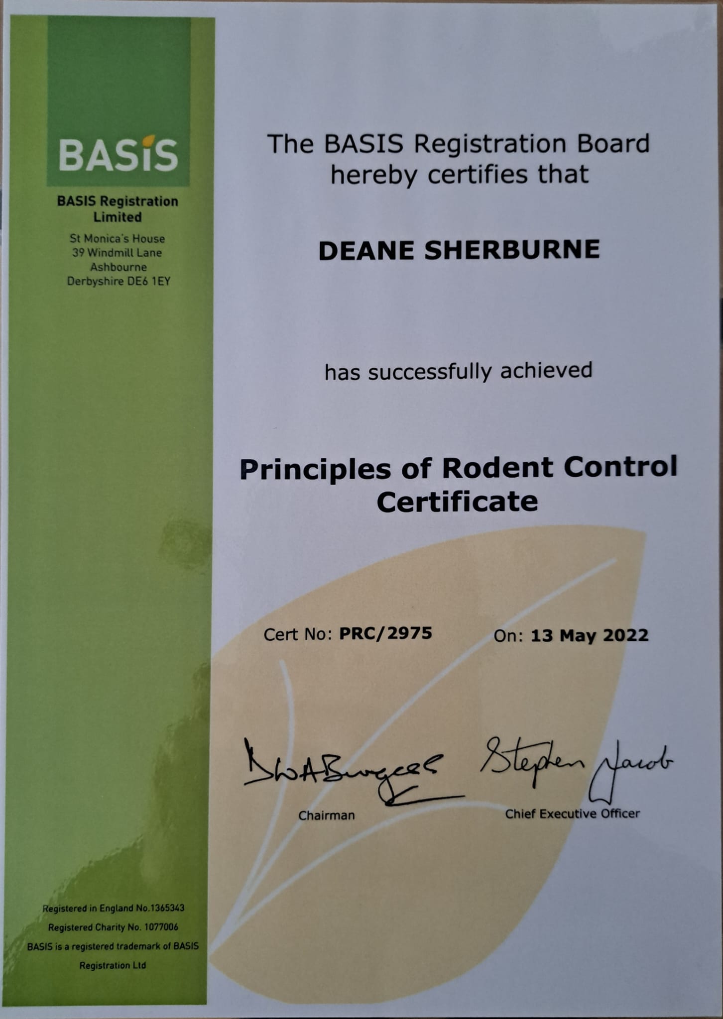 All our operatives are DBS checked and have the required qualifications to manage your pests safely and effectively. Our certificates can be found below to give you peace of mind you are in safe hands.